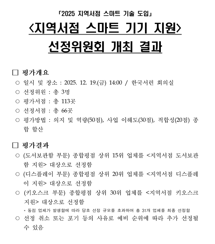 지역서점 스마트기기 지원 사업 선정
